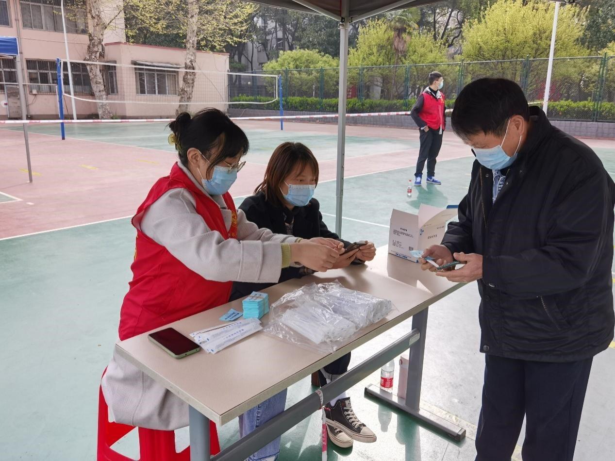 在本次核酸检测志愿服务活动中,060net永利2021级硕士研究生党支部党员同志和群众参与共计20人次,在宝丰社区、同济学子苑、同济医学院篮球场三个核酸采样现场开展志愿服务工作。参与本次活动的同志们充分体现了组织性和纪律性,在早上六点半准时到达服务现场,协助社区工作人员做好准备工作。在社区工作人员的指导下,党员同志们完成了现场摆点、给印有“已完成核酸检测”字样的卡片盖章、分类整理咽拭子和卡片、启用核酸检测试剂盒等前期准备工作,并负责在核酸检测现场值班,登记试剂盒与试管信息,扫描录入参检群众的健康码,完成了累计140小时的志愿服务。